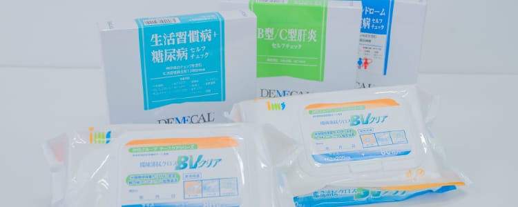 診察券や検査伝票、プリンター消耗品等の医療サプライ品や血液検査キット「デメカルキット」の販売を行っています。また、医療商材を販売する通販サイト「アイセルマーケット」を運営しています。